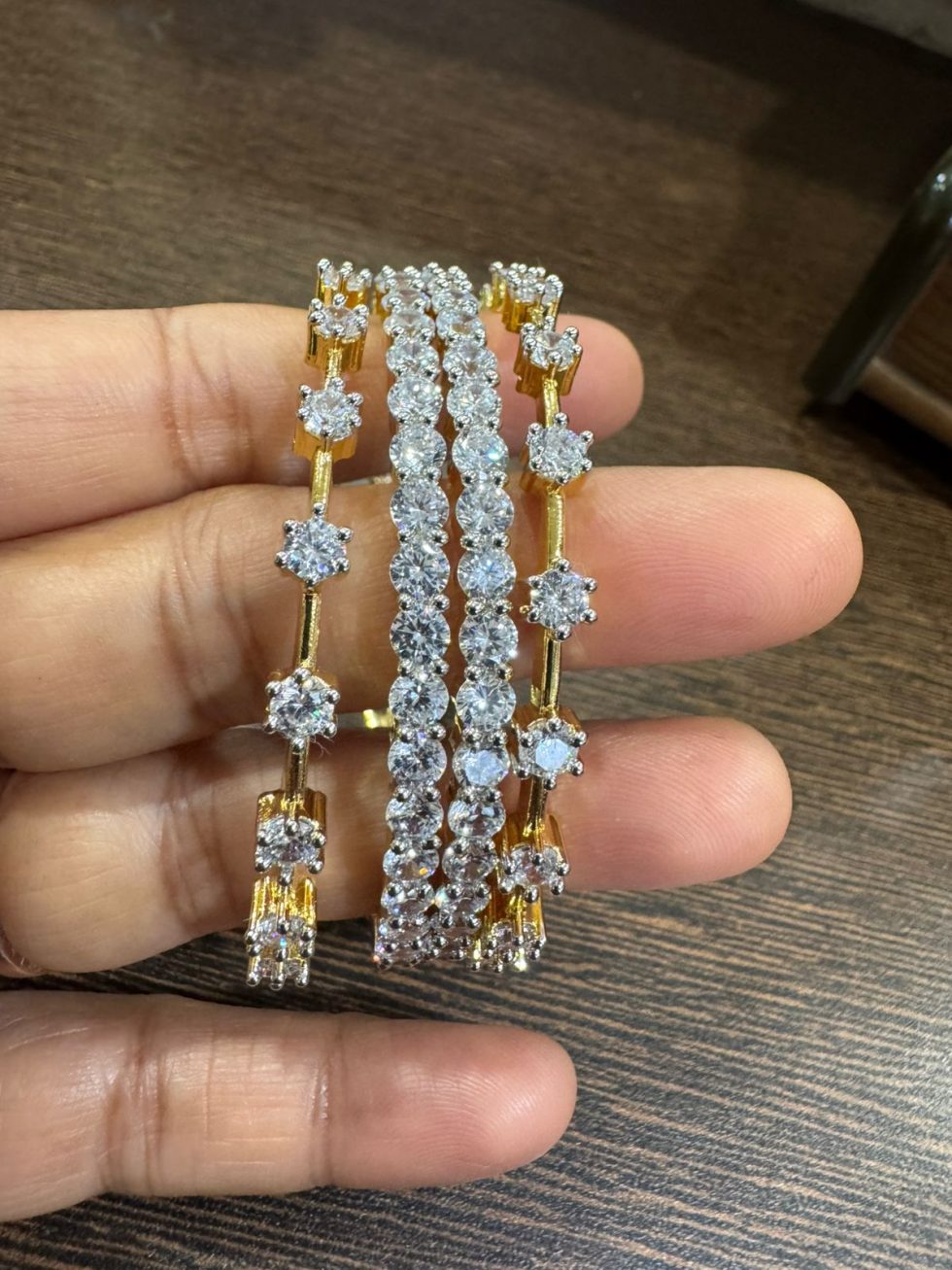 925 silver 22 carat gold plated diamond finish cz bangle. sizes available 2.4 and 2.8 size only