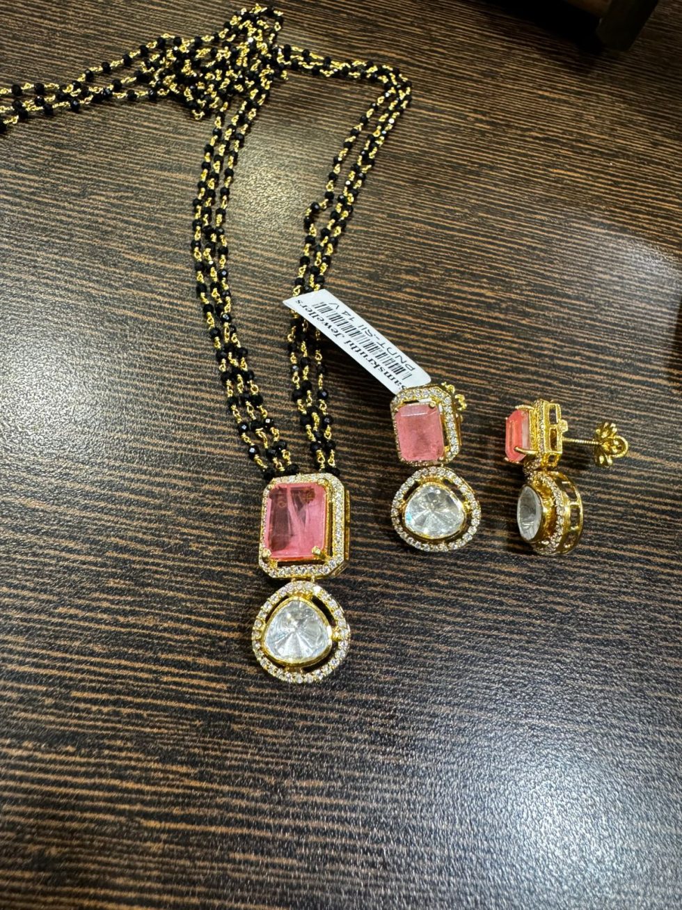 925 silver 22 carat gold plated pendantwith czs, moissanites , rose squad stone with three layered crystal black beads and earrings