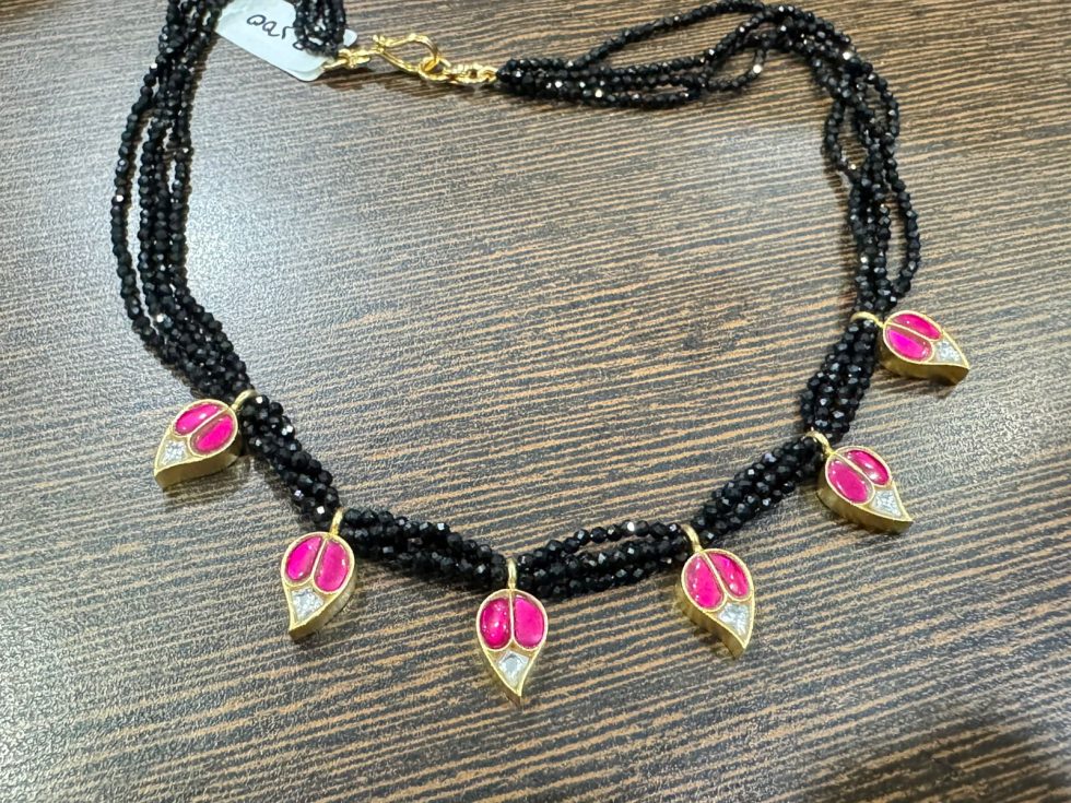 925 silver 22 carat gold plated kundan mango pendants with multi layered black beads