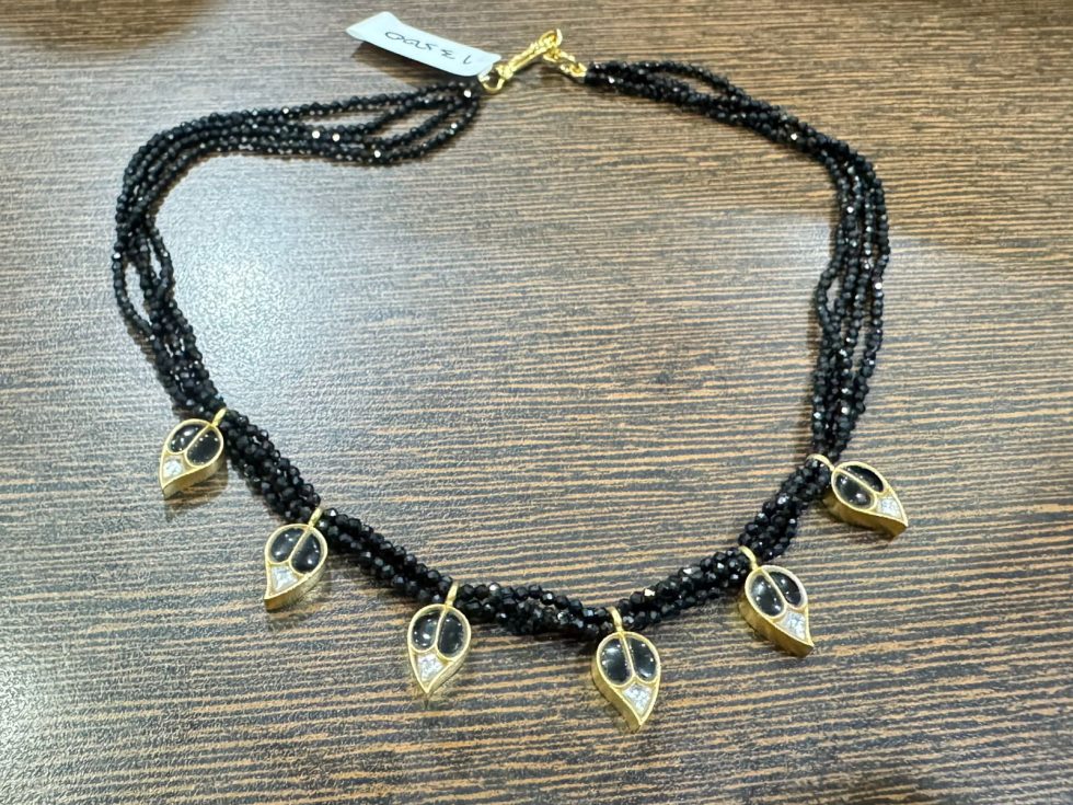 925 silver 22 carat gold plated kundan mango pendants with multi layered black baeds