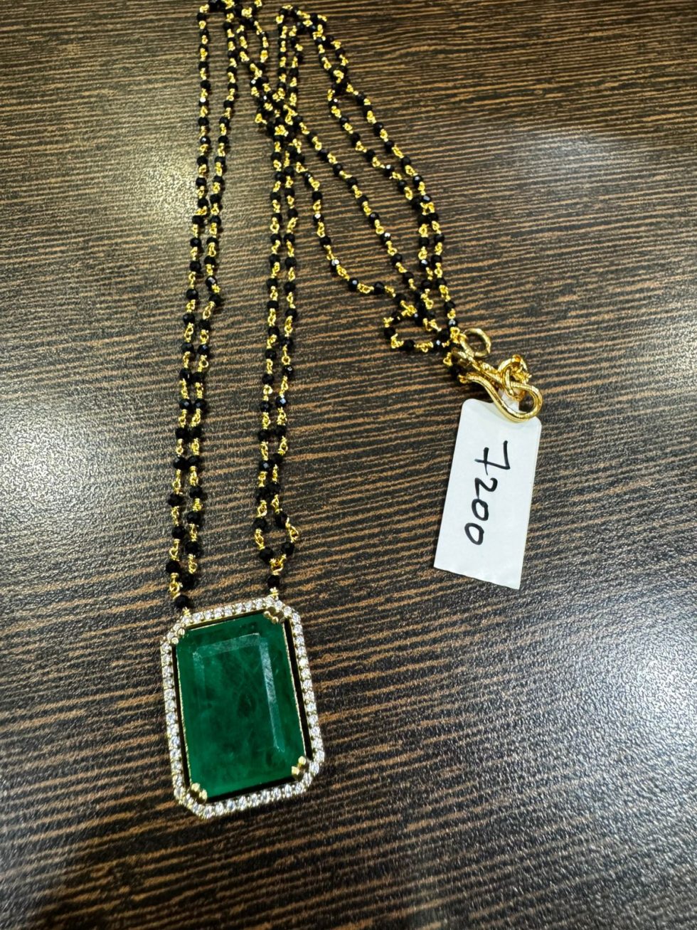 925 silver 22 carat gold plated victorian pendant with czs, semi precious emerald stone pendant with two layered crystal black baeds