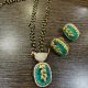 925 silver 22 carat gold plated victorian pendant with czs, semi precious emerald stone pendant with three layered crystal black beads