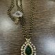 925 silver 22 carat gold plated victorian pendant with czs, semi precious emerald stone pendant with three layered crystal black beads