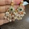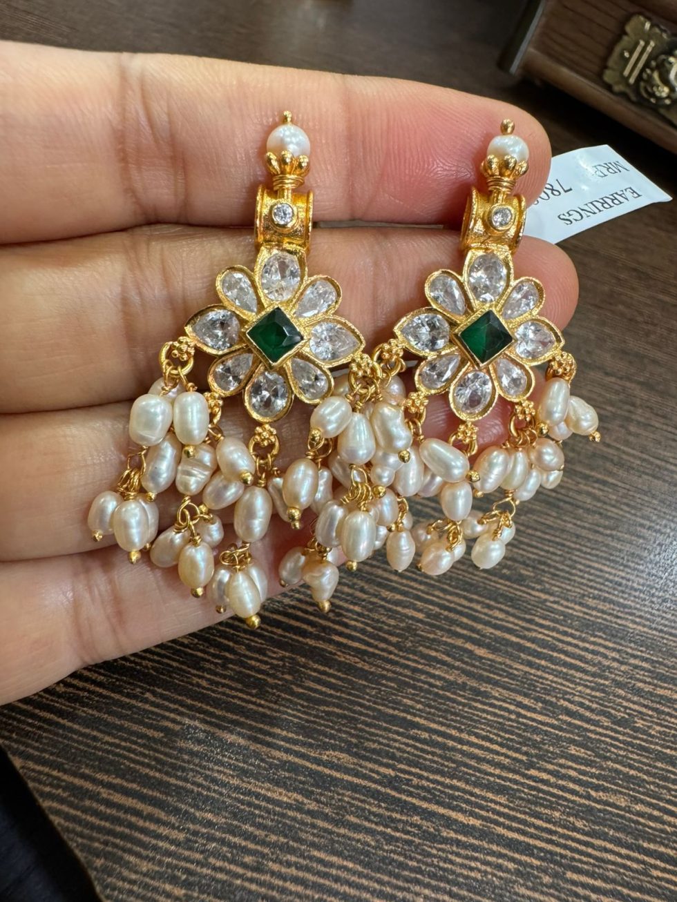 925 silver 22 carat gold plated earrings with czs , semi precious emerald stone and real rice pearls screw style earrings