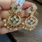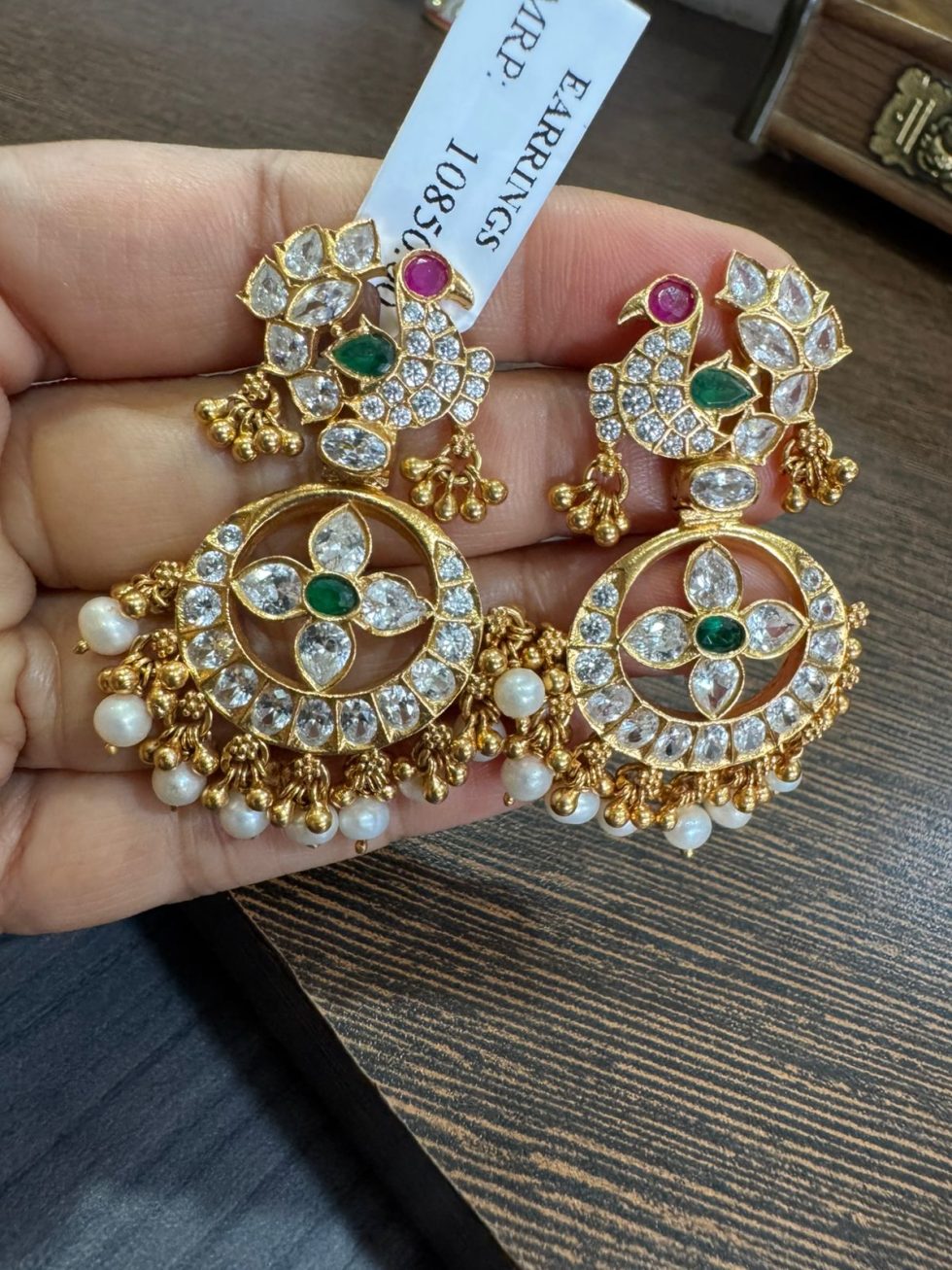 925 silver 22 carat gold plated earrings with czs , semi precious emerald , ruby stones and real rice pearls screw style earrings