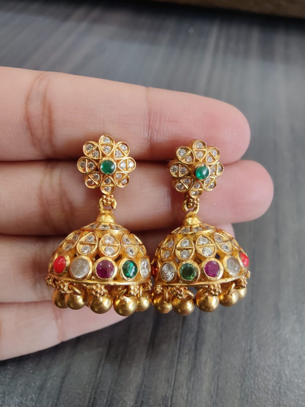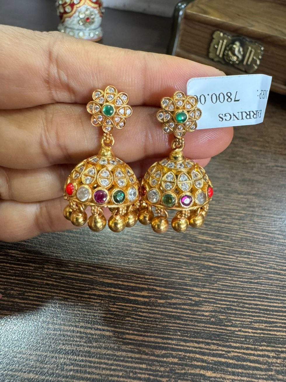 925 silver 22 carat gold plated earrings navratan screw style jumkhies