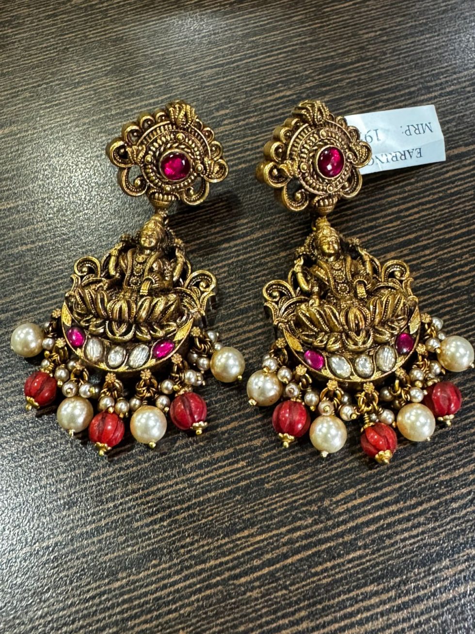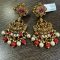 925 silver 22 carat gold plated temple kundan earrings with emerald beads and Swarovski pearls screw style earrings.