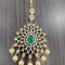 925 silver 22 carat gold plated diamond finish mang tikka with cubic zirconia stones ,semi precious emerald stone and swarovski pearls mang tikka
