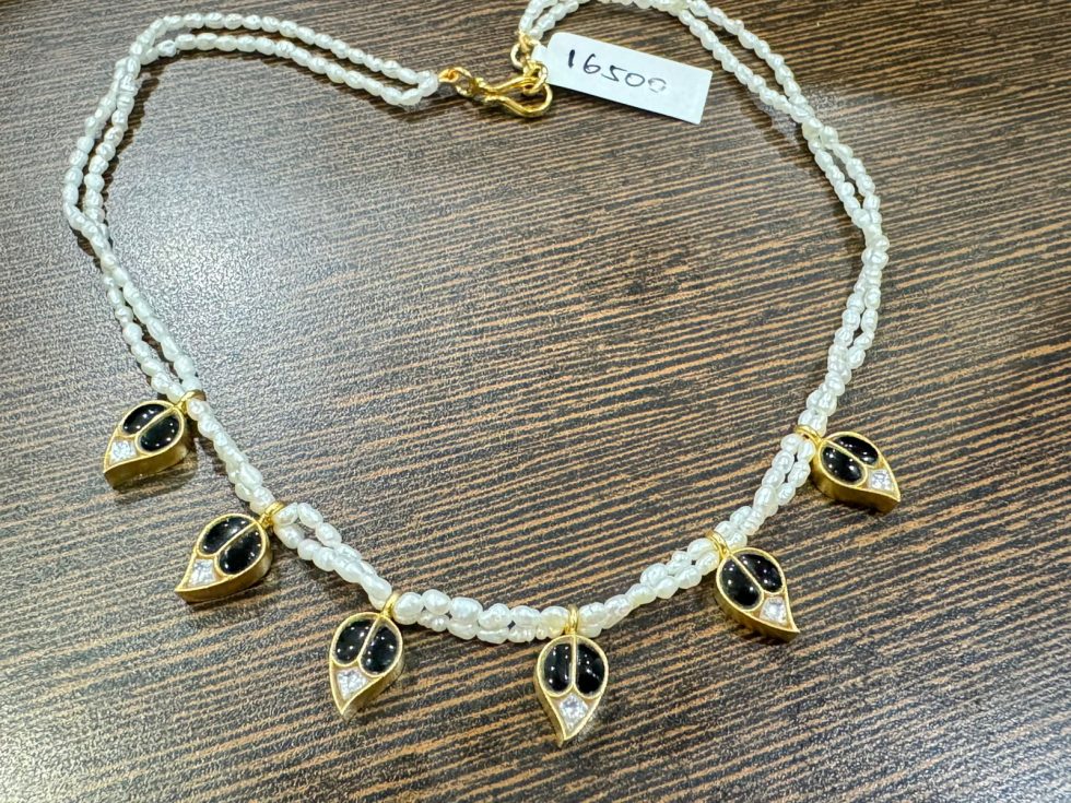 925 silver 22 carat gold plated kundan mango pendants with two layered real rice pearls necklace