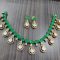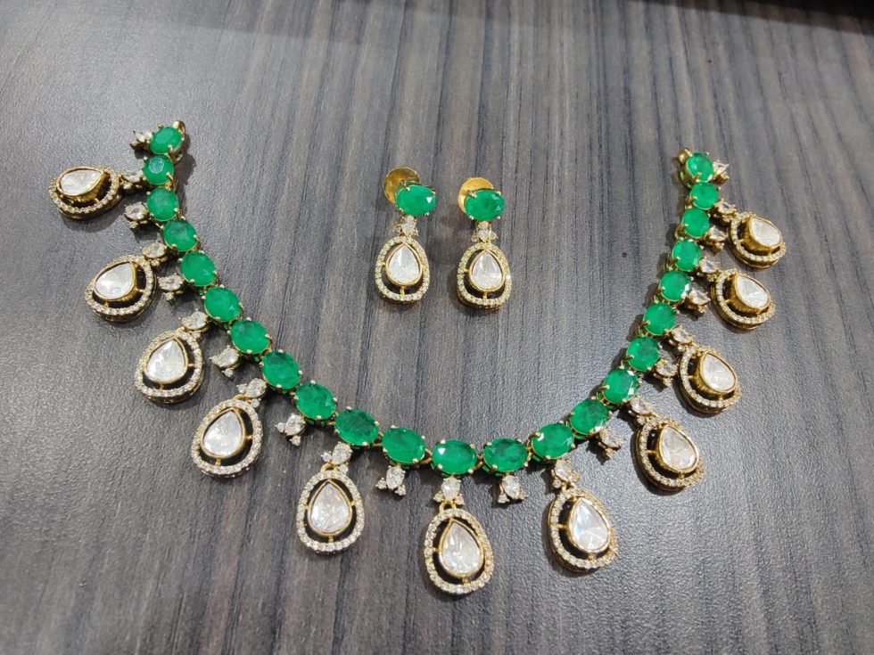 925 silver 22 carat gold plated Victorian necklace with czs , moissanites and semi precious emerald stone necklace with screw style ear earrings