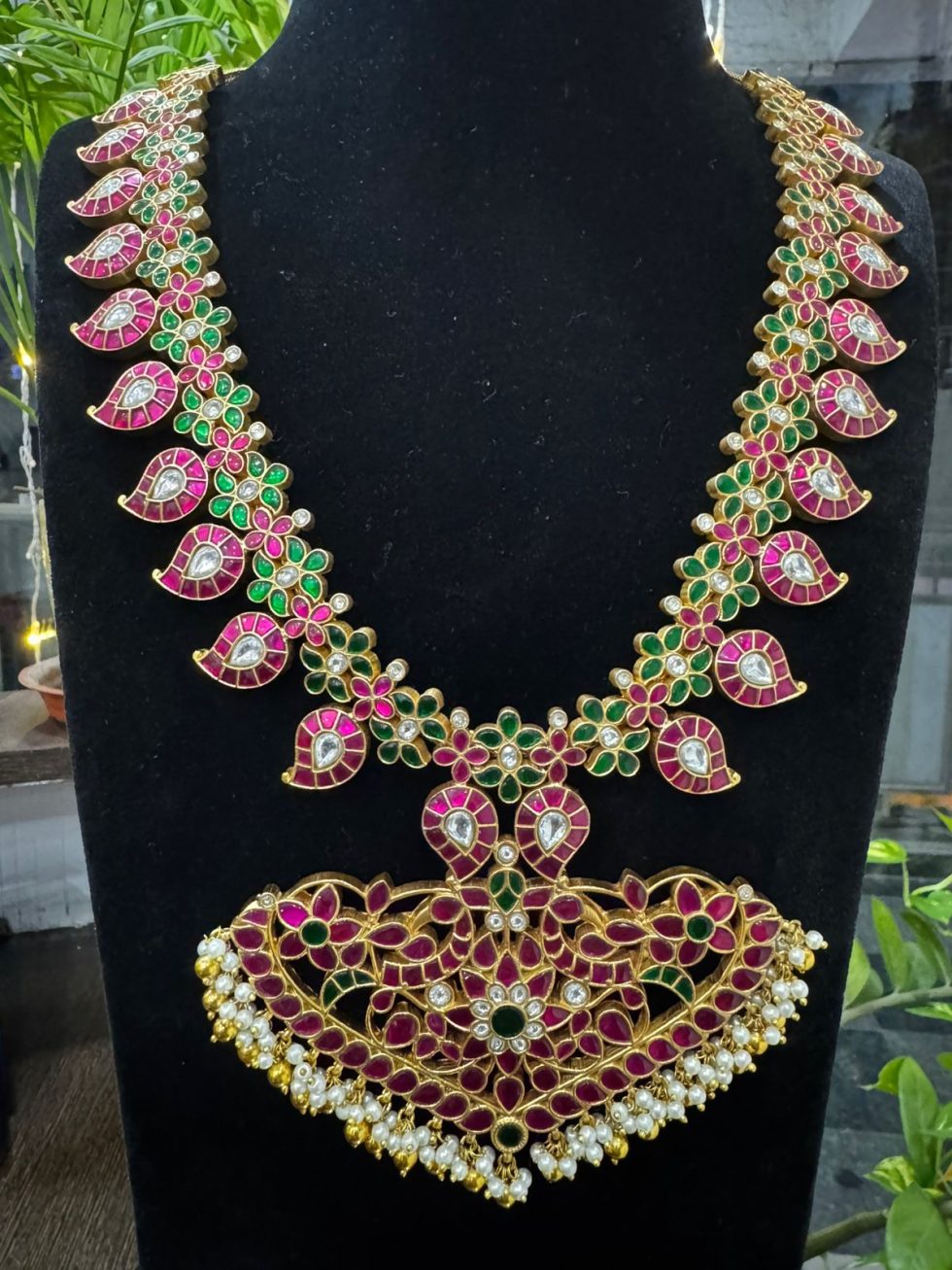 925 silver 22 carat gold plated close setting heavy kundan mango long haram