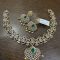 925 silver 22 carat gold plated diamond finish necklace with czs , and semi precious emerald stone detachable pendant necklace and screw style earrings