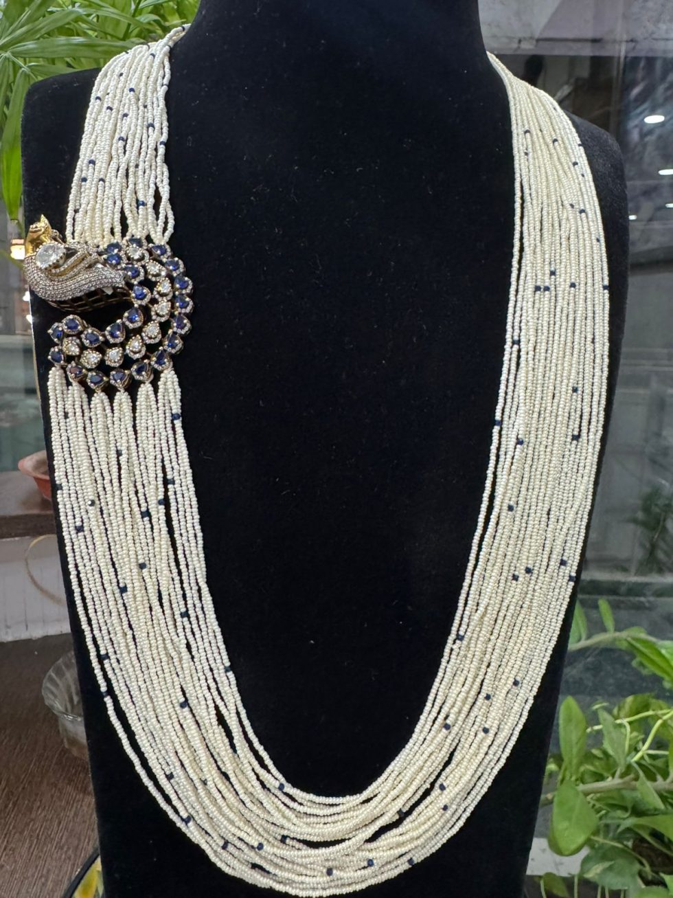 925 silver 22 carat gold plated victorian peacock moissanite pendant with multi layered pearls necklace