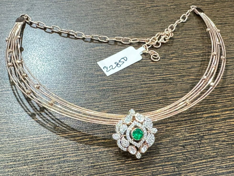 925 silver 22 carat rose gold plated kante with moissanite pendant